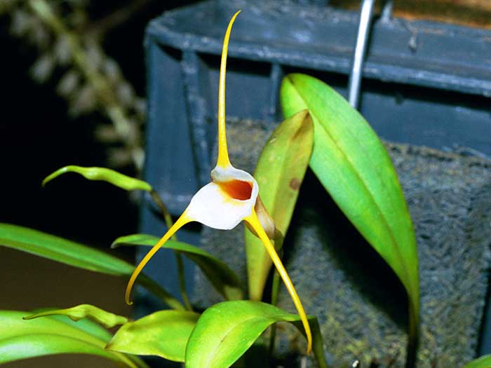 Masdevallia urosalpinx Luer 1979 - See Masdevalia constricta SUBGENUS Masdevallia SECTION Masdevallia SUBSECTION Saltatrices [Rchb.f] Luer 1986 Photo courtesy of Eric Hunt, plant grown by Gerardus Staal