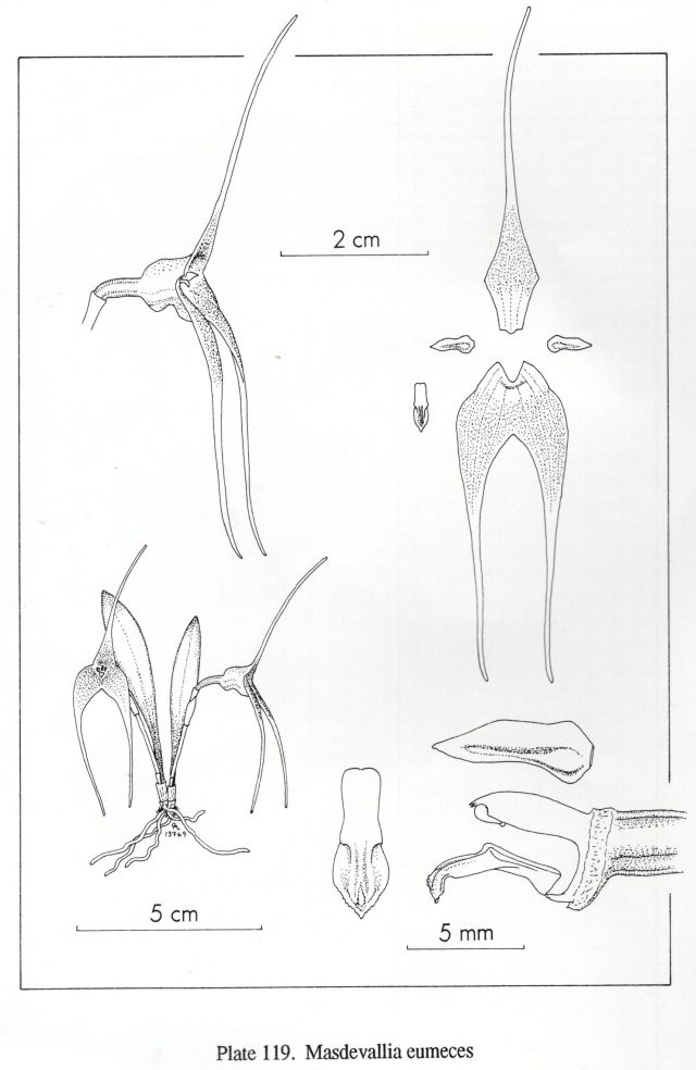 References W3 Tropicos, Kew Monocot list , IPNI ; Icones Pleuorothallidinarum XIX Masdevallia Part 1 Luer 2000 drawing fide; Icones Pleurothallidinarum XXVIII Luer 2006 as Alatacaulia eumeces