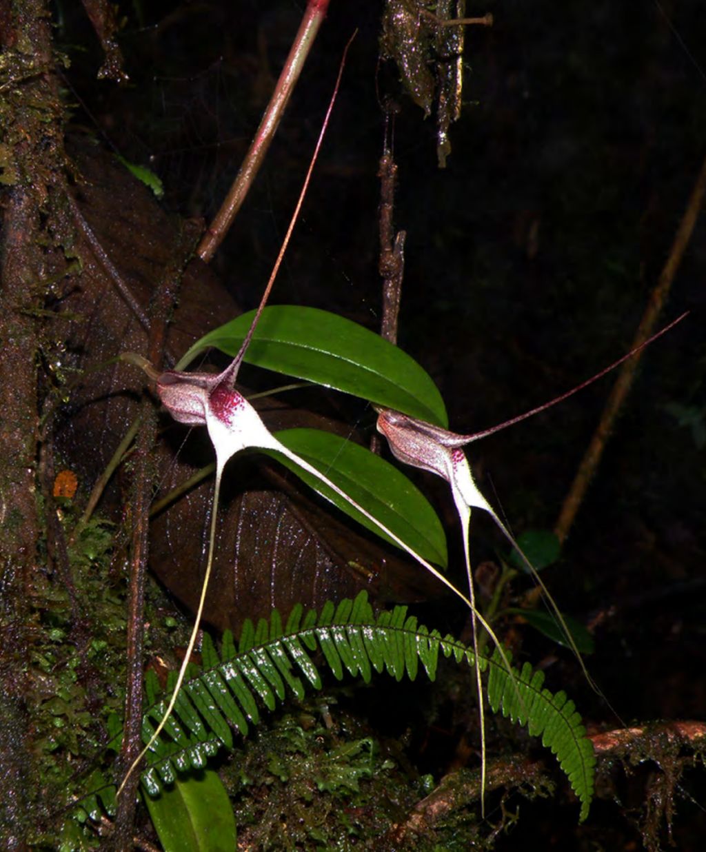"Masdevallia fenestralis appears most closely related to Masdevallia carmenensis Luer & Malo in addition to Masdevallia fenestrellata, which all share a deeply tubular flower. But M. fenestralis differs in the overall much larger size, and with a flower twice as large as M. carmenensis (ca. $" [10 cm] versus ca. 2" [5 cm] long). Masdevallia fenestralis differs from the following new species by the white and purple, internally pubescent flower, versus an overall smaller sized plant, with a smaller white and glabrous flower." Dalstrom 2015
