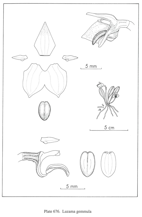 References W3 Tropicos, Kew Monocot list , IPNI ; Icones Pleurothallidinarum XXVIII Luer 2006 as Luzama gemmula drawing fide; *Internet Orchid Species Photo Encyclopedia 2014 drawing fide; Orchids Masdevallia with its segregates including Dracula Zelenko 2014 photo fide;