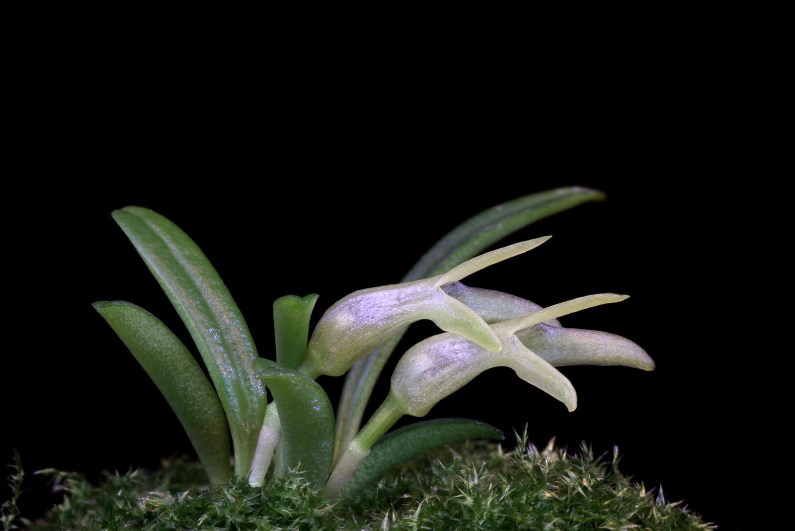 Found in Ecuador on the eastern slopes of the Andes at elevations of 1000 to 1500 meters, as a mini-miniature sized, warm to cool growing epiphyte with slender, blackish, erect, ramicauls enveloped basally by 2 to 3 loose, tubular sheaths and carrying a single, apical, erect, thickly coriaceous, narrowly obovate-linear, obtuse to subacute leaf that is narrowly cuneate below into the indistinct, petiolate base that blooms in the winter and spring on a slender, erect to suberect, , 6 to 10" [15 to 25 cm] long, single flowered inflorescence arising from low on the ramicaul.