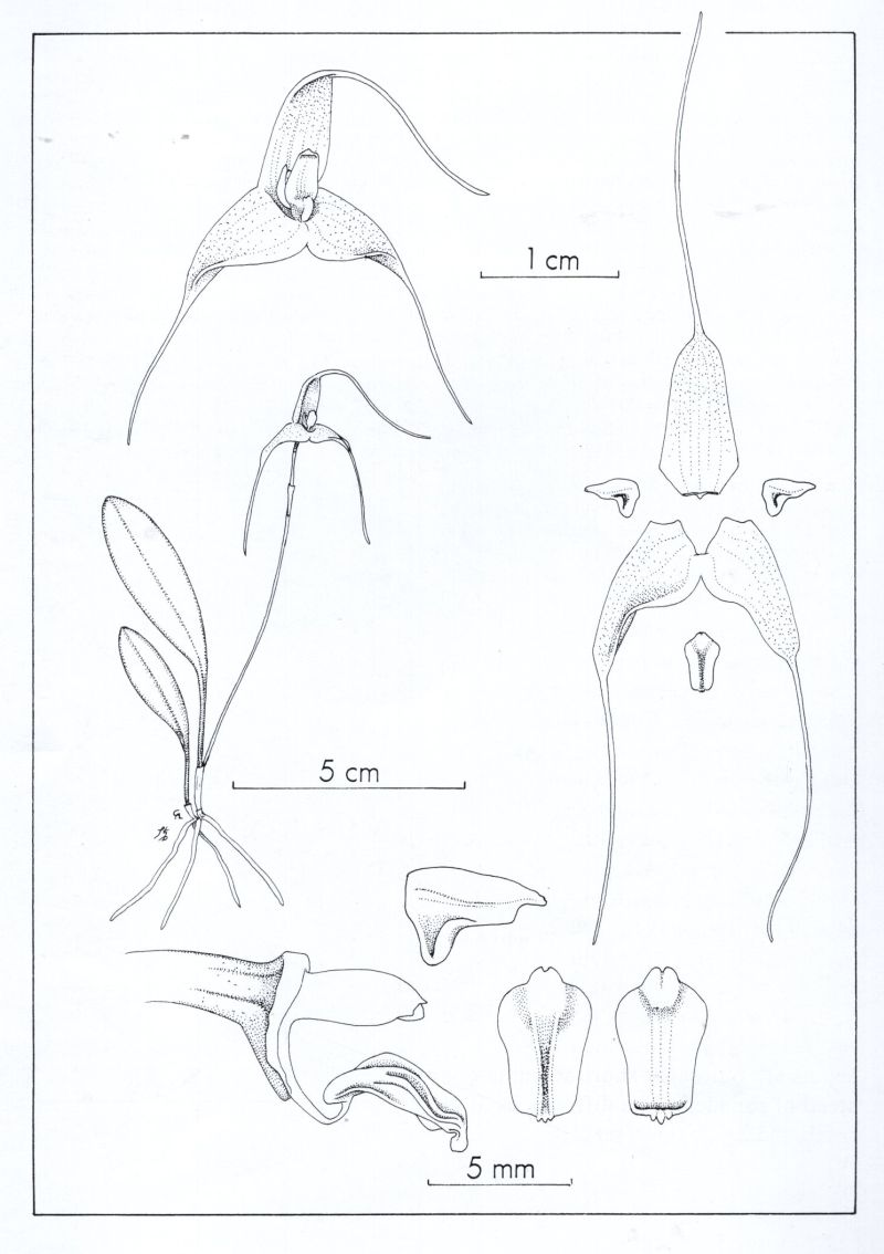 *Icones Pleurothallidinarum Vol XXVIII Luer 2006 drawing fide; Orchidaceae Masdevallia and Affiliates Dodson & Luer 2009 drawing fide; Orchids Masdevallia with its segregates including Dracula Zelenko 2014 photo fide; AOS Bulletin Vol 88 #10 2019 photo fide;