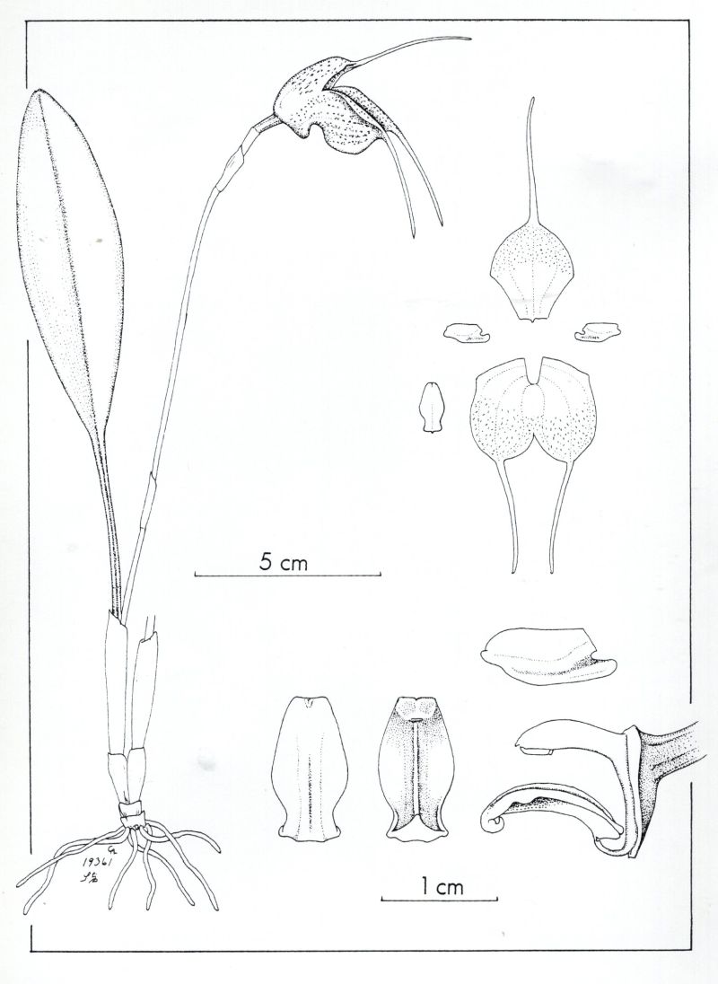References W3 Tropicos, Kew Monocot list , IPNI ; *Icones Pleurothallidinarum Vol XX Luer 2000 drawing fide; Icones Pleurothallidinarum Vol XXII Masdevallia Part 3 Luer 2001 drawing fide; Orchid Species of Peru Zelenko Bermudez 2009 photo fide; Orchids Masdevallia with its segregates including Dracula Zelenko 2014 photo fide;