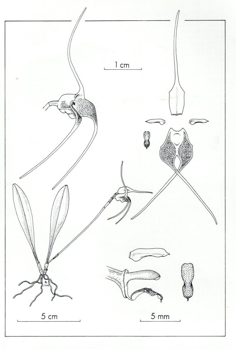 References W3 Tropicos, Kew Monocot list , IPNI ; Systematics of Masdevallia Vol 2 Luer 1986; Icones Planetarum Tropicarum Series II plate 0249 Dodson & Vasquez 1989 drawing fide; Orchids Travel By Air A Pictoral Safari Mulder, Mulder-Roelfsema and Schuiteman 1990 photo fide; Icones Pleurothallidinarum XIX Systematics of Masdevallia Part 1 Luer 2000 drawing fide; Masdevallia's in Kleur Vol 1 P M Oversteegen, Eisses & A P Sijm 2001 photo fide; Icones Pleurothallidinarum Vol XXVIII Luer 2006 as Alaticaulia oreas; Mille et Une Mini Orchideees Roguenant 2009 photo fide; Orchids Masdevallia with its segregates including Dracula Zelenko 2014 photo fide;
