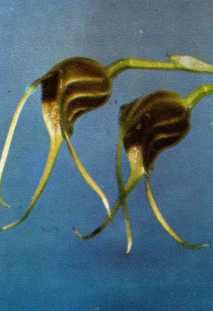 Found in El Choco' department of Colombia on the western slopes of the western cordillera of the Andes in cloud forests at elevations of 1800 to 2000 meters as a miniature sized, cool to cold growing epiphyte with erect, stout ramicauls enveloped basally by 2 to 3 loose, tubular sheaths and carrying a single, apical, erect, coriaceous, elliptical, subacte to obtuse, cuneate below into the petiolate base leaf that blooms in the spring and fall on a stout, erect, .6 to 1" [1.5 to 2.5 cm] long, single flowered inflorescence arising from low on the ramicaul, with a bract at the base and a tubular floral bract.