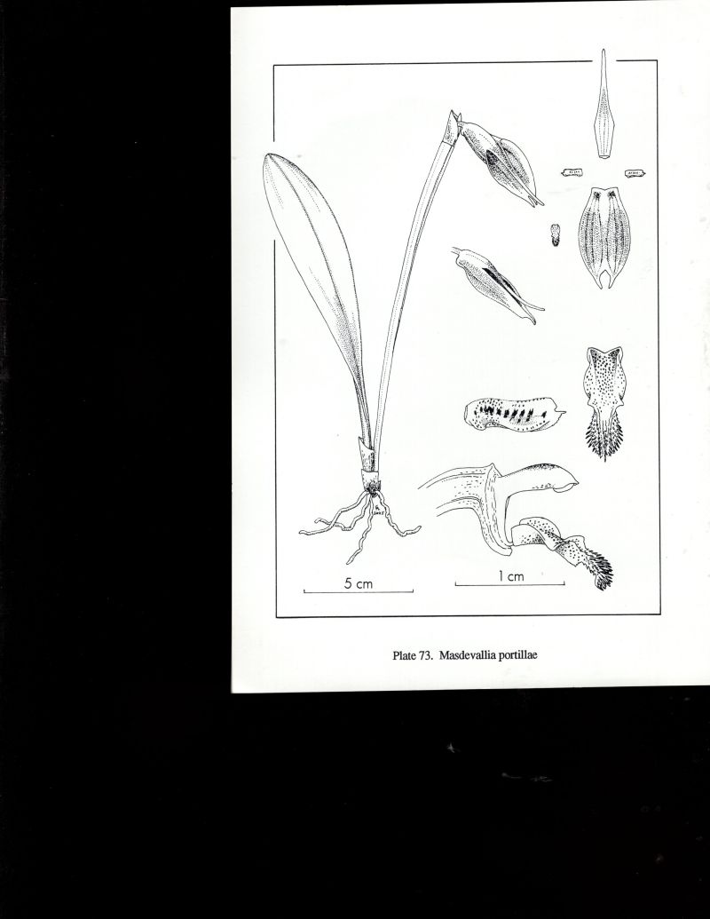 References W3 Tropicos, Kew Monocot list , IPNI ; Icones Pleurothallidinarum Vol XIX Masdevallia Part 1 Luer 2000 drwaing fide; Masdevallia's in Kleur Vol 1 P M Oversteegen, Eisses & A P Sijm 2001 photo fide; Native Ecuadorian Orchids Vol 3 Dodson 2002 photo fide; Icones Pleurothallidinarum Vol XXVIII Luer 2006 as Alaticaulia portillae; Orchidaceae Masdevallia and Affiliates Dodson & Luer 2009 as Alaticaulia portillae drawing fide;