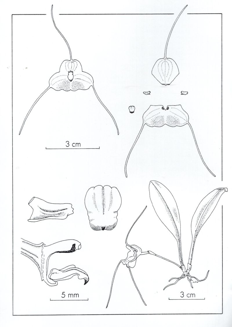 References W3 Tropicos, Kew Monocot list , IPNI ; Systematics of Masdevallia Vol 2 Luer 1986; Masdevallia's in Kleur Vol 1 P M Oversteegen, Eisses & A P Sijm 2001 photo fide; Icones Pleurothallidinarum XXIII Systematics of Masdevallia Part 4 Luer 2002 drawing fide; Native Ecuadorian Orchids Vol 3 Dodson 2002 photo fide; Orchidaceae Masdevallia and Affiliates Dodson & Luer 2009 drawing fide; Orchids Masdevallia with its segregates including Dracula Zelenko 2014 photo fide;