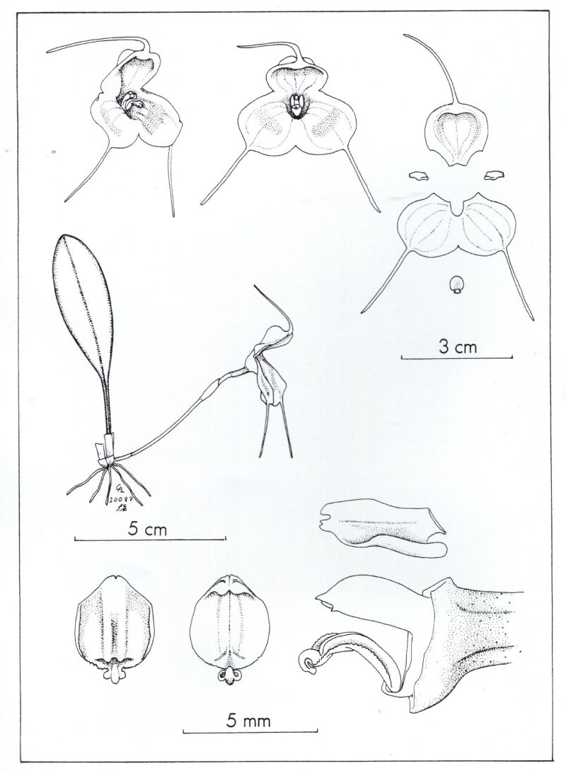 References W3 Tropicos, Kew Monocot list , IPNI ; Icones Pleurothallidinarum XXIII Masdevallia Part 4 Luer 2002 drawing fide; Native Orchids of Ecuador Vol 3 Dodson 2002 photo fide; Icones Pleurothallidinarum Vol XXVII Luer 2005 in Corrigenda; Orchid Species of Peru Zelenko Bermudez 2009 photo fide; Orchidaceae Masdevallia and Affiliates Dodson & Luer 2009 drawing ok; Orchids Masdevallia with its segregates including Dracula Zelenko 2014 photo fide;