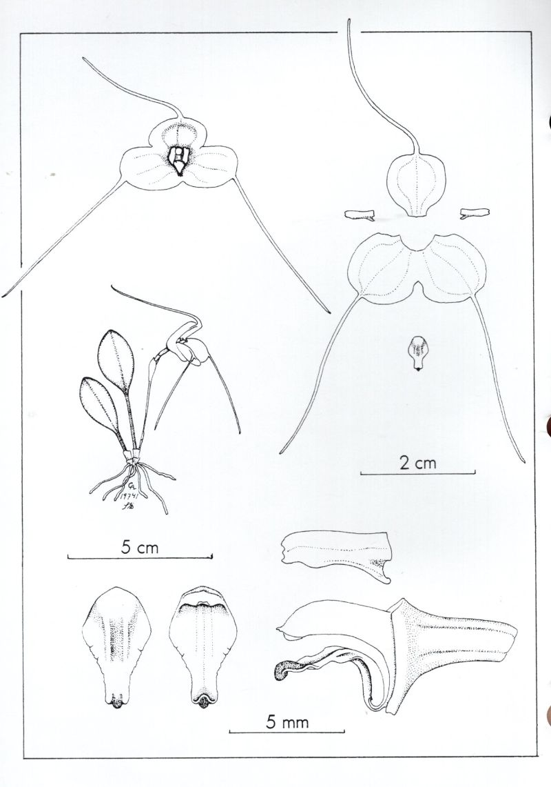 References W3 Tropicos, Kew Monocot list , IPNI ; * SELBYANA Volume 22(2) 116 2001 drawing fide; Icones Pleurothallidinarum Vol XXIII Part 4 Masdevallia Luer 2002 drawing fide; Native Ecuadorian Orchids Vol 3 Dodson 2002 photo fide; A Treasure of Masdevallia Vol 27 Luer & Dalstroem 2004 watercolor fide; Orchid Species of Peru Zelenko Bermudez 2009 photo fide; Orchidaceae Masdevallia and Affiliates Dodson & Luer 2009 drawing fide; Orchids Masdevallia with its segregates including Dracula Zelenko 2014 photo fide;
