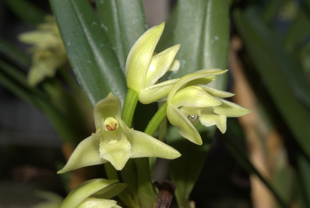 Found from Oaxaca, Vera Cruz and Chiapas States of Mexico, Guatemala, El Salvador, Honduras, Nicaragua and Costa Rica in wet forests on tree trunks and larger branches at elevations of 1200 to 1500 meters as a small to large sized, cool growing epiphyte with a rhizome completely enveloped by scarious, imbricating sheaths and giving rise to laterally compressed, ancipitous, longitudinally ridged, ovate pseudobulbs partially enveloped basally by several, imbricating, scarious, leaf-less sheaths and carrying a single, apical, linear-ligulate, obliquely retuse apically and conduplicate below into the short, petiolate base leaf that blooms in the winter on basal, through the leafless sheath, 2" [5 cm] long, single flowered inflorescence arising on the newest mature pseudobulb and carrying fragrant flowers