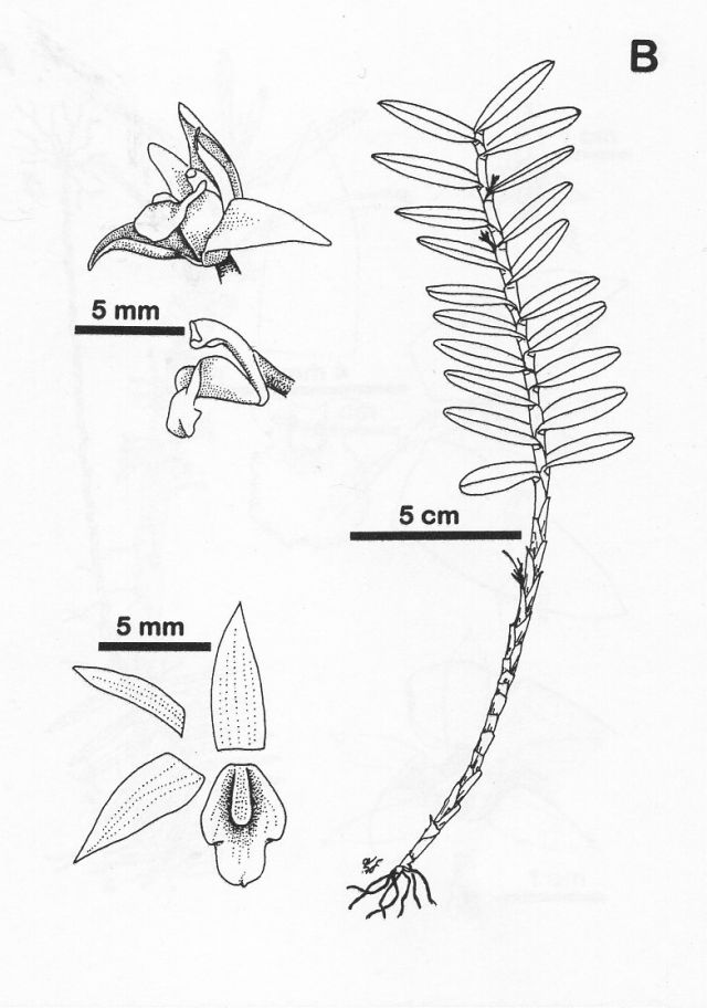 Maxillaria appendiculoides C.Schweinf. 1937 sect. Ebulbes Pfitz 1889 Drawing by © Stig Dalstrom