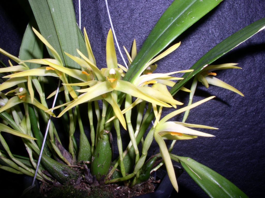 Found in Colombia and Peru on rocky slopes in montane forests at elevations around 320 to 1000 meters as a medium sized, hot to warm growing epiphyte or occasional terrrestrial with clustered, smooth, ovoid-pyriform, compressed pseudobulbs partially enveloped by several distichous, imbricating, scarious bracts and carrying a single [or rarely 2], oblong-lanceolate, stiff, acute, dark green leaf that narrows below into a long conduplicate petiole and blooms winter and spring in the northern hemisphere on an erect, basal, 4 to 5" [10 to 12.5 cm] long, single flowered inflorescence arising on a mature pseudobulb and enveloped basally by 3 tubular, acuminate bracts.