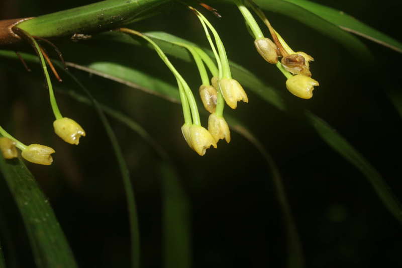Found in Bolivia in wet tropical forests on steep slopes at elevations around 700 meters as a medium to large sized, warm growing terrestrial/epiphyte with an erect stem carrying erect-patent, lorate, unequally and obtusely bilobed apically thinly coriaceous leaves that blooms in the summer on short, single flowered inflorescence with narrowly linear, acute, almost half as long as the ovary floral bracts and carrying pale whitish to yellowish, fleshy flowers.