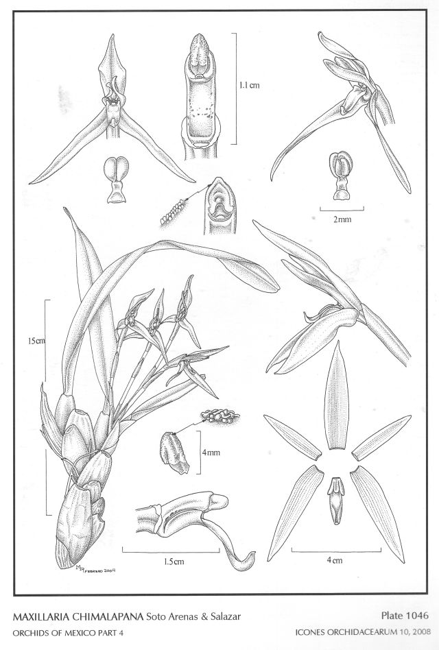 Maxillaria chimalapana Soto Arenas & Salazar 2008 sect. Cucullatae Christenson 2013 TYPE Drawing by © M A Lopez Rojas & Soto