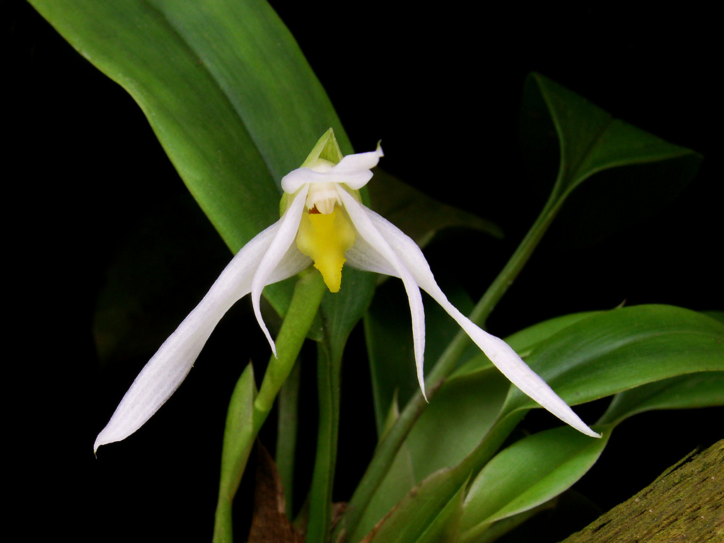 Found in Costa Rica, Panama and Ecuador in premontane evergreen forests at elevations of 600 to 1000 meters as a small sized, warm growing epiphyte with ovoid, compresssed pseudobulbs enveloped below by 1 to 3, subtending, foliaceous, long petiolate base sheaths and carrying a single, apical, usually broadly elliptic, acute, apiculate, 7 veined, crisped margined, abruptly narrowing below into the elongate, petiolate base leaf that blooms in the late summer through winter on 1, arising from the rhizome bract, [3.5 to 8 cm] long, single flowered inflorescence enveloped completely by inflated, acute bracts and has an acute, cucullate, longer than the ovary floral bract.