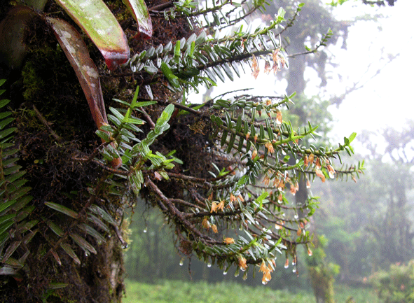 Found in Costa Rica and western Panama at elevations of 800 to 2400 meters as a medium sized, warm to cold growing epiphyte that has an Epidendrum-like vegatative look with an erect, sometimes branching stem carrying many, densely distichous, elliptic to lanceolate, coriaceous, unequally bilobulate apically, basally clasping leaf that blooms at any time of the year on a .4 to 1" [1 to 2.5 cm] long, single flowered inflorescence mostly concealed by subulate floral bracts.