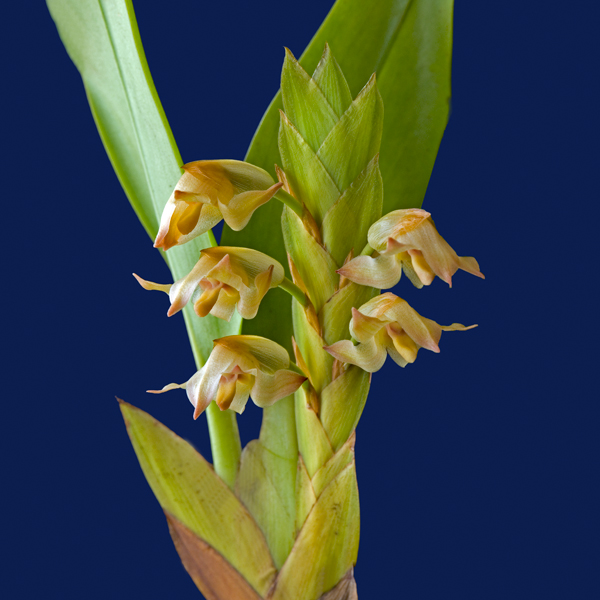 Found in Nicaragua?, Costa Rica, Panama, Colombia, Ecuador and Peru in premontane and lower montane forests at elevations of 500 to 1700 meters as a giant sized, warm to cool growing epiphyte with straggly, pendent to decumbent stems with several successive shoots only anchored at the base and terminated by an ovoid, compressed pseudobulb subtended in youth by 1 to 3 foliaceous sheaths and carrying a single, apical and along the rhizome, elliptic, acute to acuminate, abruptly narrowing to form a slender petiolate base leaf that blooms in the late summer, fall, winter and early spring on several, lateral, short to .6" [1.5 cm] long, single flowered inflorescence arising from the axils on a developing growth and subtended by a cucullate, acute to subulate floral bract and carries color variable flowers.