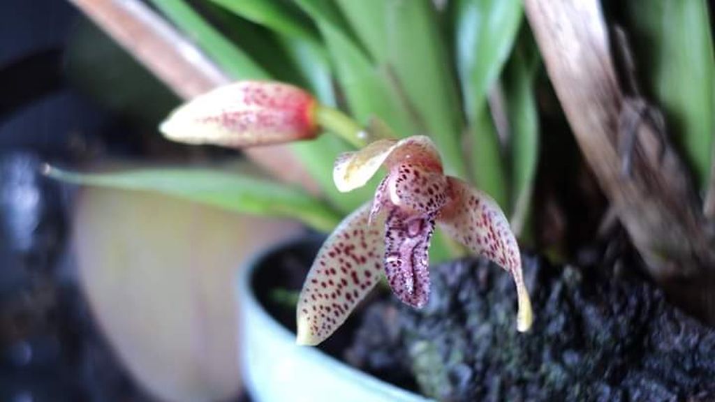 Found in Colombia and Peru at elevations around 1245 meters as a medium sized, cool growing epiphyte with a fan shaped growth without pseudobulbs carrying 6 or more, linear-lanceolate, acute, strongly conduplicate base leaves that blooms in the spring on axillary, peduncle 4 to 6" [10 to 15 cm] long, single flowered inflorescence with lanceolate, acute, less than 1/2 the length of the ovary and carrying foul smelling, creamy white colored, spotted with dark purple flowers.