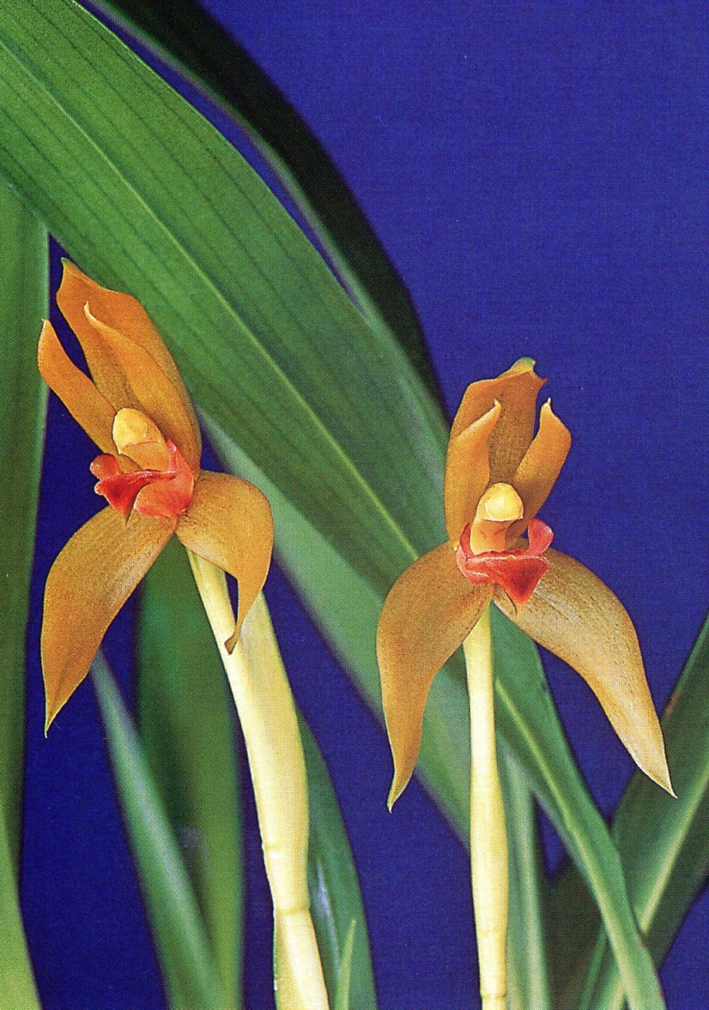Found in northern Brazil, Guyana, Venezuela, Colombia and Peru in montane rainforests at elevations around 400 to 650 meters as a small sized, hot to warm growing epiphyte with short, ovoid to suborbicular, produced in 2 alternating rows, compressed, rugulose pseudobulbs subtended by a pair of scarious bracts and carrying 2 apical, erect, linear, acute, gently tapering towards the conduplicate, petiolate base leaves that blooms in the late winter and early spring on fully mature pseudobulbs, erect, 3.4 to 4" [8.5 to 10 cm] long, nearly concealed by 4 basal, densely red brown, pustulate bracts, above closed, lightly inflated, acuminate, yellowish green, pusticulate bracts, single flowered inflorescence carrying a campanulate flower with orange yellow tepals with small red brown markings, the keel clear gren, the lip base and apex red brown over yellowish white, the callus red, the column clear yellow and more intense towards the apex, and the pollina brilliant yellow.