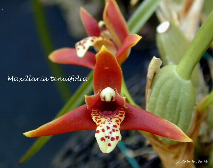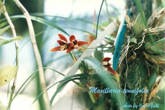 References W3 Tropicos, Kew Monocot list , IPNI ; Die Orchideen Schlechter 1915; Atlas des Orchidees Cultivees Constantin 1920 drawing good; Encyclopedia of Cultivated Orchids Hawkes 1965 photo fide; Las Orquedias De El Salvador Vol 2 Hamer 1974 drawing/photo fide; AOS Bulletin Vol 48 No 5 1979; AOS Bulletin Vol 48 No 6 1979 photo fide; Orquídea (Mexico City), n.s., 7[3]: 1979; Las Orquedias de El Salvador Vol 3 Hamer 1981 drawing fide; Icones Planetarum Tropicarum plate 867 Dodson 1983 drawwing fide; AOS Bulletin Vol 54 No 1 1985 photo fide; An Introdution to the Orchids of Mexico Wiard 1987 photo fide; Icones Planetarum Tropicarum plate 1366 Atwood 1989 drawing fide; Orchids Travel By Air A Pictoral Safari Mulder, Mulder-Roelfsema and Schuiteman 1990 photo fide; Icones Orchidacearum I Plate 63 Hagsater & Salazar 1990 drawing fide; The Manual Of Cultivated Orchid Species Bechtel, Cribb & Launert 1992 photo fide; Rudolf Schlechter Die Orchideen Band 1B lieferung 28 1713 - 1776 Brieger 1993 photo ok; AOS Bulletin Vol 63 No 4 1994 photo fide; AOS Bulletin Vol 66 No 3 1997 photo fide; AOS Bulletin Vol 67 No 1 1998 photo fide; Guatemala Y Sus Orquideas Behar & Tinschert 1998 photo fide; Fieldiana Biology, Flora Costa Ricensis Family # 39 Orchidaceae, subtribes Maxillariinae and Oncidiinae Atwood & Mora 1999; Fieldiana Biology, Flora Costa Ricensis Family # 39 Orchidaceae, subtribes Maxillariinae and Oncidiinae Atwood & Mora 1999 drawing fide; W3 Tropicos, Kew Monocot list , IPNI ; Manual de Plantas de Costa Rica Vol 3 Hammel, Grayum, Herrera and Zamora 2003; Australian Orchid Review Vol 69 No 2 2004 photo; Orquideologia Vol 24 #2 2006 photo fide; AOS Bulletin Vol 75 No 2 2006 drawing fide; AOS Bulletin Vol 76 No 1 2007 photo fide; Australian Orchid Review Vol 72 No 2 2007 photo; AOS Bulletin Vol 78 No 2 2009 photo FIDE; AOS Bulletin vol 78 No 11 2009 photo fide; Mille et Une Mini Orchideees Roguenant 2009 photo fide; Orchids of Costa Rica Vol 4 Morales 2009 as Maxillariella tenuifolia photo fide; Orchid Digest Vol 74 #3 2010 as Maxillariella tenuifolia photo/drawing fide; AOS Bulletin Vol 80 #2 2011 as Maxiariella tenuifolia photo fide; AOS Bulletin Vol 80 #6 2011as Maxillariaella tenuifolia photo fide; Las Orquideas del Peru Bezverhov 2011 photo fide; Guia de Orquideas de Chiapas Carlos Rommel Beutelspacher Baigts 2013 as Maxillariella tenuifolia photo fide; Orchid Digest Vol 80 #1 2016 as Maxillariella tenuifolia photo fide; Orchid Digest Vol 80 #2 2016 as Maxiariella tenuifolia photo fide; Orchid Digest Vol 80 #2 2016; AOS Bulletin Vol 85 #5 2016 as Maxillariella tenuifolia photo fide; AOS Bulletin Vol 86 #4 2017 photo fide; AOS Bulletin Vol 86 #6 2017 photo fide; Orchid Genera and Species in Guatemala Archila, Szlachchetko, Chiron, Lipinska, Mystkowska and Bertolini 2018 as Maxillariela tenuifolia photo fide; AOS Bulletin Vol 88 # 6 2019 photo fide; AOS Bulletin Vol 88 #7 2019 photo fide; AOS Bulletin Vol 88 #8 2019 drawing fide; The Orchid Review Vol 1278 No 1330 June 2020 photo fide;