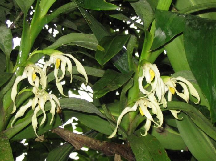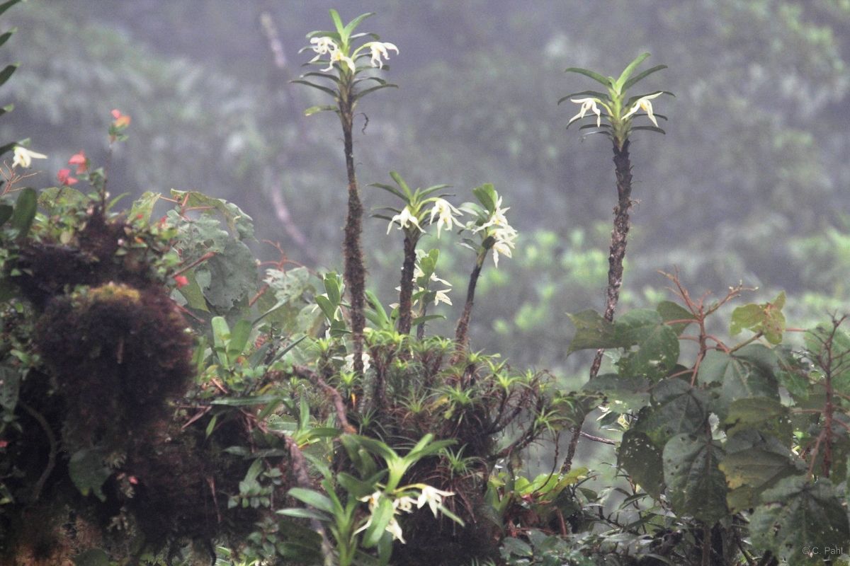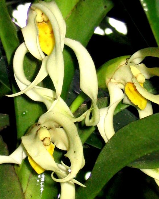 Found in Costa Rica and Panama in secondary cloud forests and pastures on tree trunks at elevations around 800 to 1800 meters as a large sized, cool to warm growing epiphyte with an erect to pendent stem subtended by ovoid pseudobulbs carrying a single apical, coriaceous, distichous on the canes, oblong-elliptic, apically variable, gradually narrowing below into the shortly petiolate base leaf that blooms in the winter and spring on a lateral, 2 to 3.2" [5 to 8 cm] long, single flowered inflorescence carrying a fragrant flower that occurs in the winter and spring