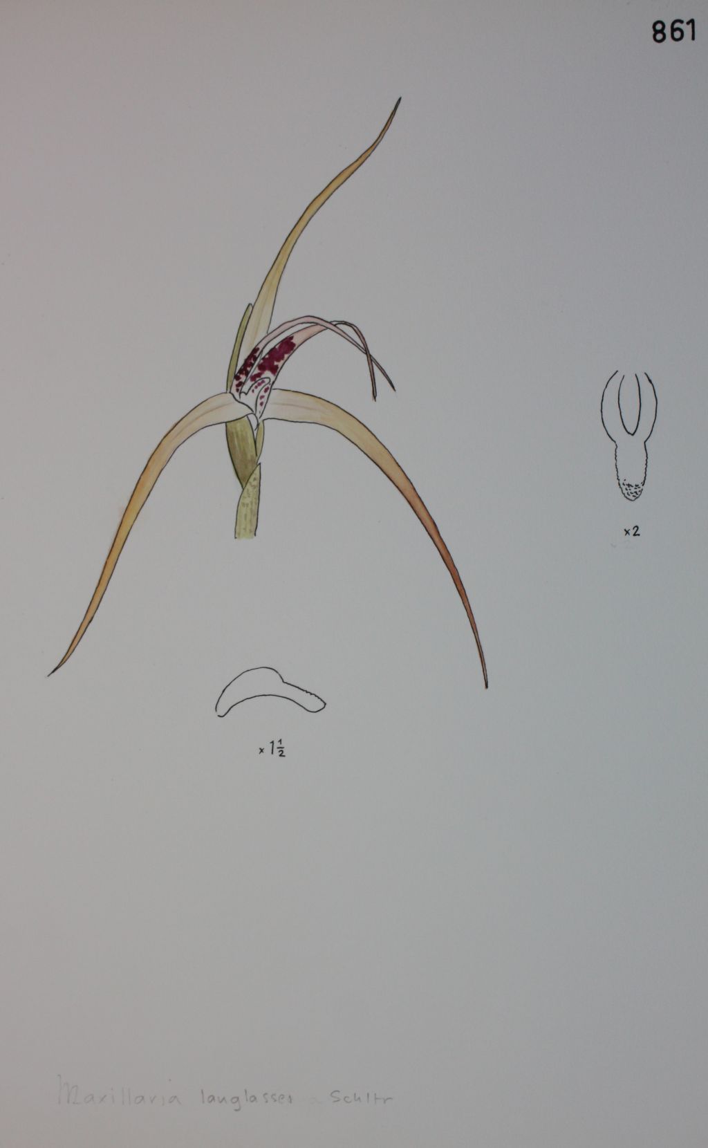 Maxillaria langlassei Schltr. 1924 Original Drawing by © Padre Pedro Ortiz Conserved at the Herbario de la Universidad Javeriana, Bogota Colombia