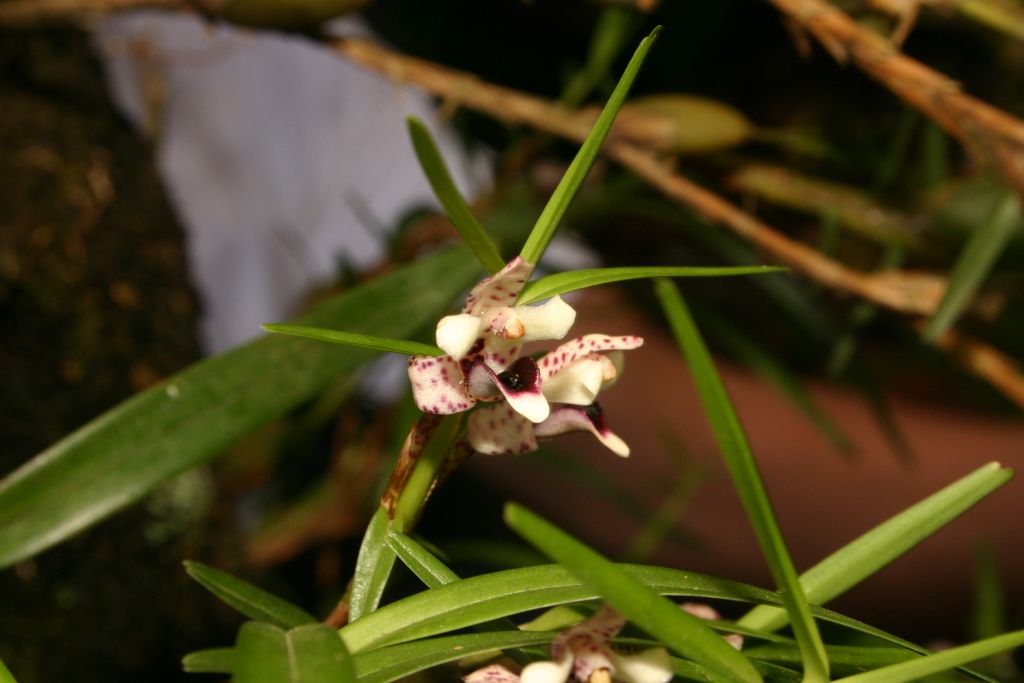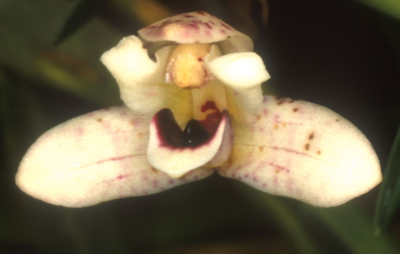 Found in northwestern Venezuela and Colombia in premontane and montane forests at elevations around 1500 to 3000 meters as a small sized, cool to cold growing epiphyte with a scrambling, woody rhizome with 1 to 2" [2.5 to 5 cm] between each globose, smooth pseudobulb enveloped basally by a few soon deciduous leaf bearing sheaths and carrying 2 apical, narrowly linear, acute leaves that blooms in the fall, winter and spring on a few short, axillary, 2" [5 cm] long, single flowered inflorescence arising on a mature pseudobulb.