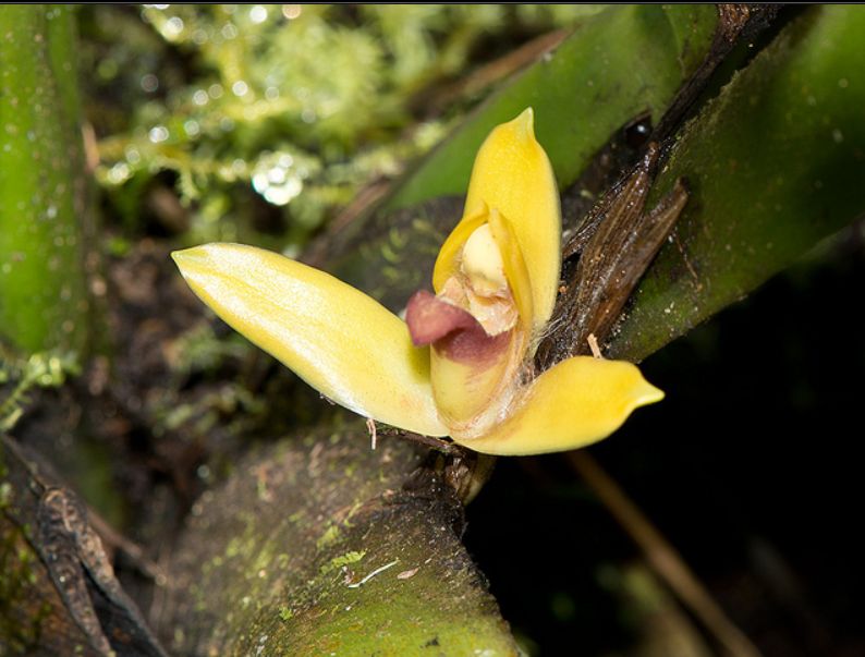 Found in Mexico, Guatemala, Honduras, Nicaragua, Costa Rica and Panama in wet forests at elevations of 700 to 1150 meters as a small to medium sized, warm to cool growing epiphyte with ovate, smooth, laterally compressed pseudobulbs subtended by 2 or more, large, leaf-bearing sheaths and carrying a single, apical, subcoriaceous, rather tough, oblong, obtuse to unequally bilobed, conduplicate below into the petiolate base leaves that blooms at most any time of the year on a fascile of successively opening, single flowered inflorescence that are 1.6 to 2" [4 to 5 cm] long and enveloped by somewhat flared, obtuse, apiculate bracts and carrying coconut to napthalene scented [can be good or foul smelling], leathery flowers