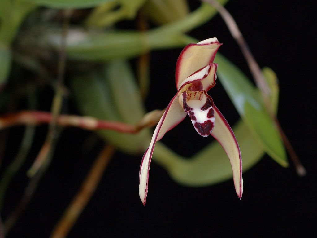 Found in the coastal forest of Minas Gerais state of Brazil and Ecuador at elevations of 2500 to 3200 meters as a medium sized, cold growing, solitary leafed epiphyte with a long, branched rhizome giving rise to clustered to set apart, ovoid, compressed, ribbed pseudobulbs carrying 1 to 2, apical, ligulate, acute leaves and blooms in the summer and fall on a 3 to 6" [7.5 to 15 cm] long, single flowered inflorescence arising on a newly developing pseudobulb that holds the large, well open flower amid the leaves.