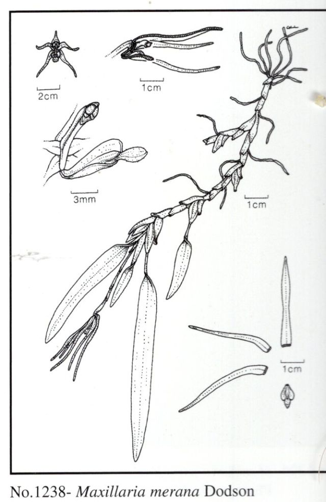 Maxillaria merana Dodson 1994 Drawing by Calaway Dodson