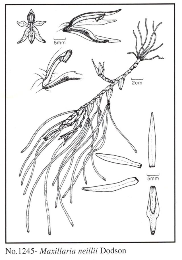 Maxillaria neillii Dodson 1994 sect. Iridifoliae Pfitz 1889 Drawing by Calaway Dodson
