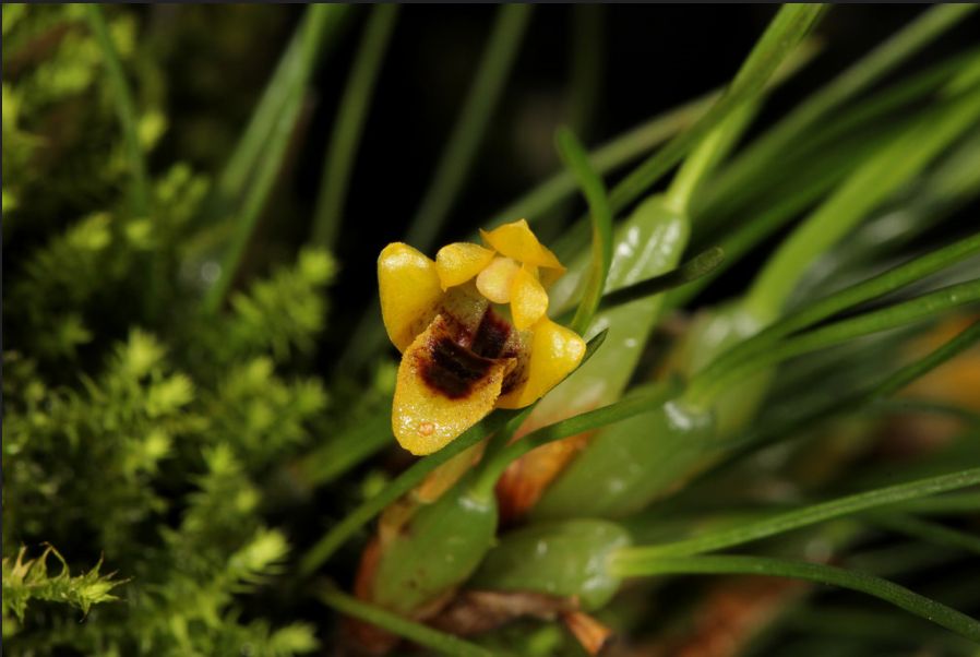 Found in Bahia, Minas Gerais, Sao Paulo, Rio de Janiero, Parana, Santa Catarina and Rio Grande do Sul states of Brazil to Misiones Argentina in seasonally dry to wet forests at elevations of 200 to 1700 meters as a mini-miniature sized, hot to cool growing epiphyte with a clumping, tufting, much branching rhizome giving rise to narrowly ovoid, ridged, green to purplish brown pseudobulbs enveloped by scarious bracts and carrying 2, apical, suberect, needle-like, acute, wiry to leathery leaves that blooms in the spring and summer on a very short, lateral, single flowered inflorescence. .