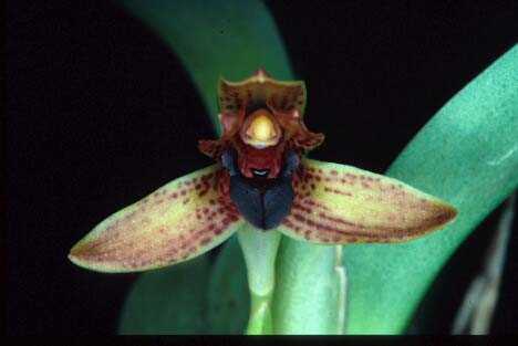 Found in Chiapas state of Mexico, Belize, Guatemala, El Salvador, Honduras, Nicaragua, Costa Rica and Panama at altitudes of 950 to 2500 meters as a small to medium sized, warm to cold growing epiphyte with ovoid to suborbicular, compressed pseudobulbs subtended by non foliaceous, subulate sheaths and carrying a single, apical, narrowly elliptic, obtuse, emarginate, apiculate, gradually narrowing below into the indistinctly to shortly petiolate base leaf that blooms in the spring through summer on one or more from each sheath axil, 4" [10 cm] long, terete inflorescence with a cucullate, acute, floral bract and stinky scented flowers.