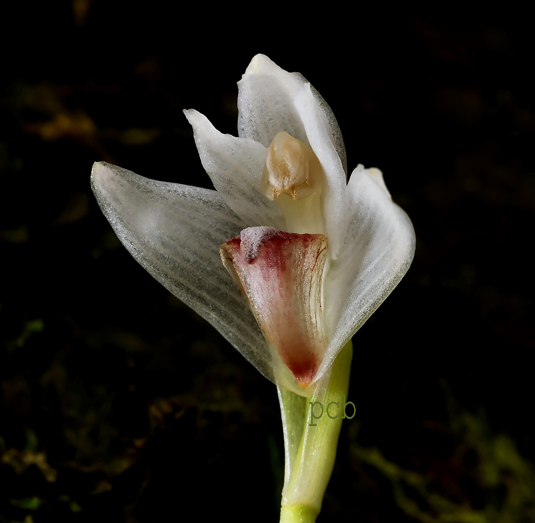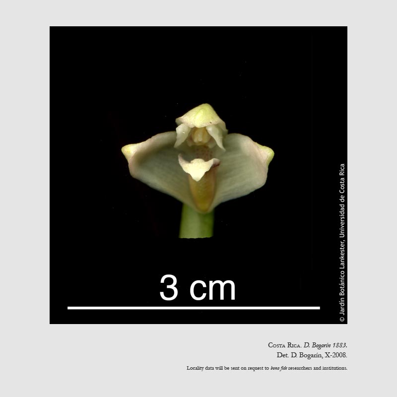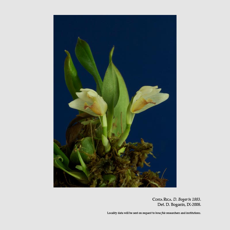 Found in Honduras, Nicaragua, Costa Rica and Panama in permontane and lower montane forests at elevations of 500 to 1500 meters as a miniature to small sized, warm to cool growing epiphyte with ovoid to suborbicular pseudobulbs enveloped basally by leaf-less sheaths and a single leaf-bearing sheath and carrying a single, apical, narrowly to broadly elliptic, acute to subattenuate apically, gradually narrowing below into the elongate, narrow petiolate base leaf that blooms in the late spring through fall on 1 or more, .4 to 1.4" [1 to 3.5 cm] long, single flowered inflorescence with flowers that often do not open well.