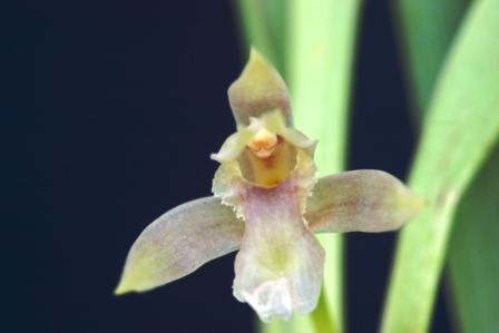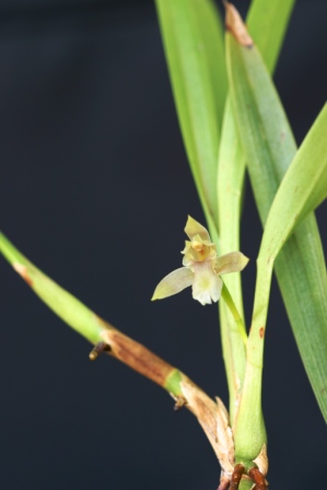 Found in Guyana, Venzuela and Brazil cloud forests at elevations around 1000 to 1600 meters as a small to medium sized, cool growing epiphyte with about 6" [15 cm] between each, robust, ovoid to elliptic, brownish pseudobulbs enveloped basally by a scarious sheath and carrying a single, apical erect, linear-oblong, coriaceous, rigid, conduplicate leaf that blooms in the fall
