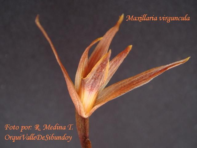 References W3 Tropicos, Kew Monocot list , IPNI ; *Bonplandia Rchb.f 1854; Xenia Orchidaceae Rchb.f 1854 drawing; Symbolae Antillanae Vol VI Orchidaceae Urban 1909; Flora de Venezuela Volumen 15 Parte 4 Foldats 1970 as M attenuata; Flora de Venezuela Volumen 15 Parte 4 Foldats 1970; Fieldiana Biology, Flora Costa Ricensis Family # 39 Orchidaceae, subtribes Maxillariinae and Oncidiinae Atwood & Mora 1999 as M attenuatadrawing good; Manual de Plantas de Costa Rica Vol 3 Hammel, Grayum, Herrera and Zamora 2003 as M attenuata;