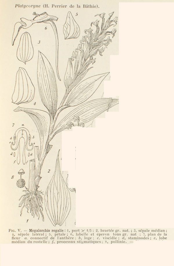 !Megalorchis regalis (Schltr.) H.Perrier 1936 publ. 1937 Drawing by © Perrier de Bathie and The Botanicus Website
