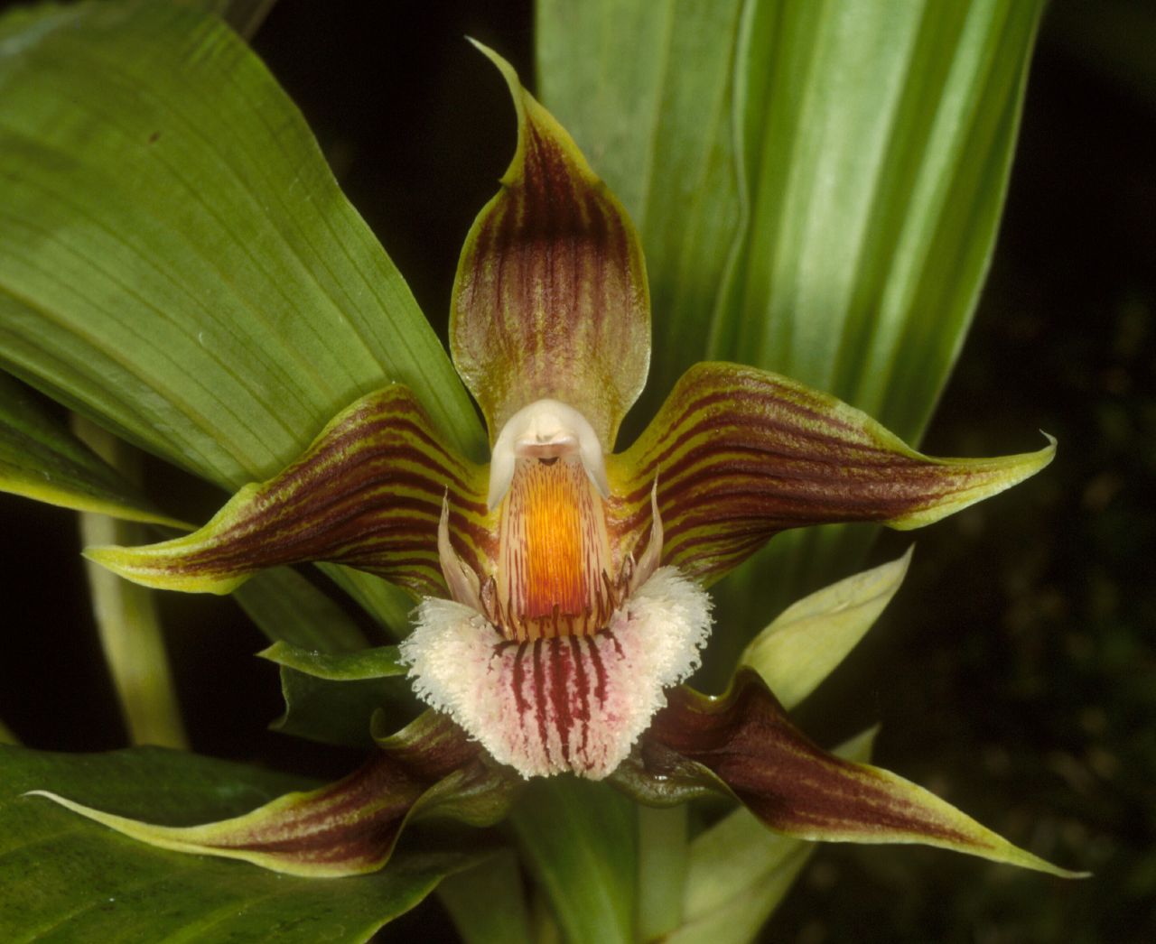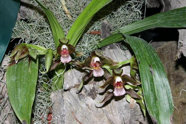 Found in Mexico, Belize, Guatemala, Costa Rica and Colombia on trees in open, lowland rain forests at 100 to 1100 meters in elevation as a medium sized, hot to cool growing, humidity loving, epiphytic species from , with pyriform to ovoid pseudobulbs subtended in youth by a few scarious sheaths and carrying 2 to 3, plicate, ovate-lanceolate, conduplicate at the base leaves that blooms in the spring and summer on a basal, 2 to several flowered, to 8" [20 cm] long, lateral inflorescence arising on a newly maturing pseudobulb that has ovate lanceolate bracts and carrying fragrant, fleshy flowers.
