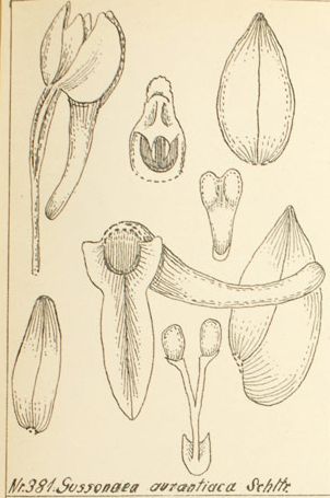 Microcoelia aurantiaca (Schltr.) Summerh. 1943 TYPE Drawing of Gussonea aurantiaca by © Schlechter and The Swiss Orchid Foundation at the Jany Renz Herbaria Website