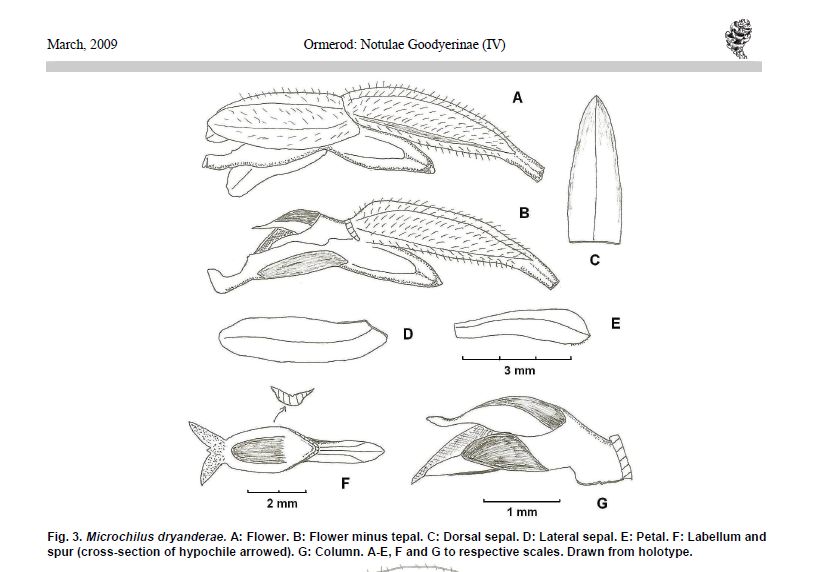 Microchilus dryanderae Ormerod 2009 TYPE Drawing by © Paul Ormerod and The Notulae Goodyerinae IV, Taiwania Website