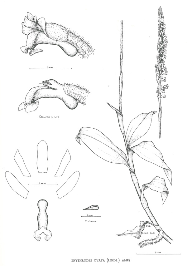 References W3 Tropicos, Kew Monocot list , IPNI ; Studies in the family Orchidaceae Vol VII Ames 1922 as Erythrodes ovata; Orchids of Peru Vol 1 Schweinfurth 1958 as Erythrodes ovata; Venezuelan Orchids Illustrated Vol 3 Dunsterville & Garay 1965 as Erythrodes ovatus drawing fide; Flora de Venezuela Foldats Volumen XV Part 1 1969 as Erythrodes ovata drawing fide; Macchu Picchu Orchids Christenson 2003 as Erythrodes ovata