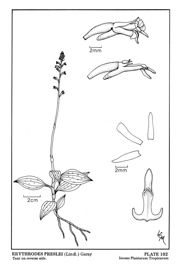 References W3 Tropicos, Kew Monocot list , IPNI ; Icones Plantarum Tropicarum Plate 102 Dodson 1980 as Erythrodes preslei drawing fide; Icones Orchidacearum Peruviarum Plate 659 Bennett & Christenson 2001 as Erythrodes preslii not = Microchilus major ;