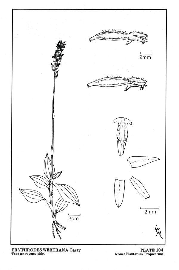 Microchilus weberianus (Garay) Ormerod 2002 Drawing by © Lisa Megahee and The Swiss Orchid Foundation at the Jany Renz Herbaria Website