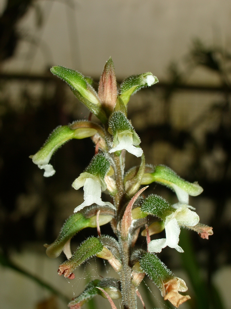 Found in Ecuador, Colombia and Venezuela in wet montane forests at elevations around 2000 meters as a medium sized, cool to cold growing terrestrial with an erect, glabrous stem carrying 4 to 5, erect-patent, obliquely elliptic, acuminate, cuneate below into the petiolate base leaves that blooms in the later fall and winter on an erect, 12" [30 cm] long, densely many flowered inflorescence with 4 to 5, acuminate, glandular-hairy bracts and erect-patent, ovate-lanceolate, acuminate floral bracts