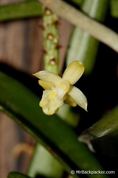 Found in Assam India, Bangladesh, India, Myanmar, Thailand, Malaysia, Laos, Cambodia, Vietnam, Borneo, Java and Sumatra in swamp forests at elevations around sea-level to 1000 meters as a medium to large sized, monopodial, hot to warm growing epiphyte with an stout, robust stem carrying ligulate, spreading, coriaceous, unequally roundly, bilobed apically, keeled on the underside leaves that blooms in the spring on a short to 3' [90 cm] long, axillary, paniculate, loosely, successively many flowered inflorescence that is longer than the leaves with elliptic-lanceolate floral bracts.
