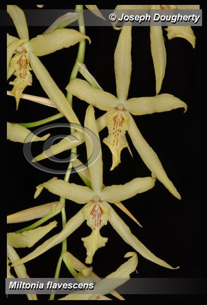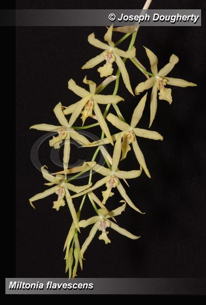 Synonyms *Cyrtochilum flavescens Lindley 1841; Cyrtochilum stellatum Lindley 1838; Irenea flavescens (Lindl.) Szlach., Mytnik, Górniak & Romowicz 2006; Miltonia flavescens var. grandiflora Regel 1887; Miltonia flavescens var. stellata (Lindl.) Regel 1887; Miltonia flavescens var. typica Regel 1887; Miltonia loddigesii Regel 1890 publ. 1891; Miltonia stellata hort. 1841; Oncidium flavescens [Lindley] Rchb.f 1863; Oncidium stellatum (Lindl.) Beer 1854