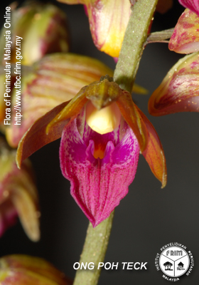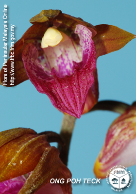 Found in Malaysia in hill forests on the forest floor at elevations of 450 to 1000 meters as a small sized, hot to warm growing terrestrial with an erect, cylindrical pseduobulbish stem carrying a single, cordate, acuminate, undulate marginally leaf that blooms in the spring on a basal, erect, 12" [30 cm] long, to 10 simultaneously flowered inflorescence with recurved bracts