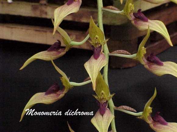 References W3 Tropicos, Kew Monocot list , IPNI ; Die Orchideen Schlechter 1915 as Monomeria dichroma; Encyclopedia of Cultivated Orchids Hawkes 1965 as Monomeria dichroma; Rudolf Schlechter Die Orchideen Band 1B lieferung 24 1457 - 1520 Brieger 1991 as Monomeria dichroma; Identification of the Orchids [Orchidaceae Juss.] Vietnam Averyanov 1994 as Monomeria dichroma; Bulbophyllum and Their Allies Seigerist 2001 as Monomeria dichroma