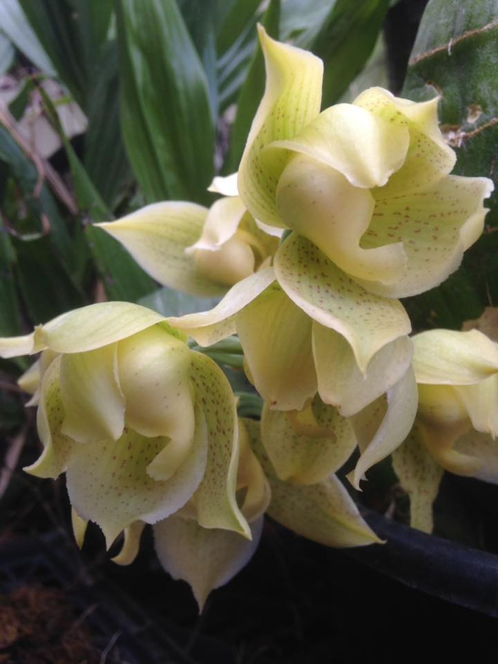 Common Name The Bizarre Mormodes [refers to the flowering on a new growth with the rest of plant in full leaf]