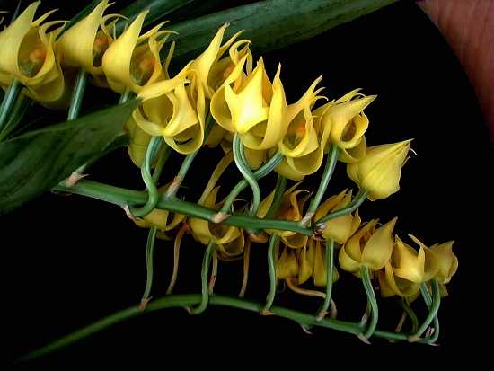 Found in Mexico as a medium to large sized, cool to warm growing epiphyte, that has a disagreeable odor, but beautiful longer lasting, yellow flowers that occur in the fall and early winter.
